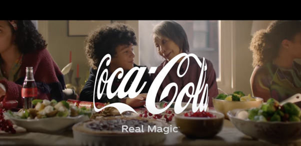 As they sit down to share the feast, we see “Christmas is magic, when we share it” across our screen Coke, we raise a can to you.